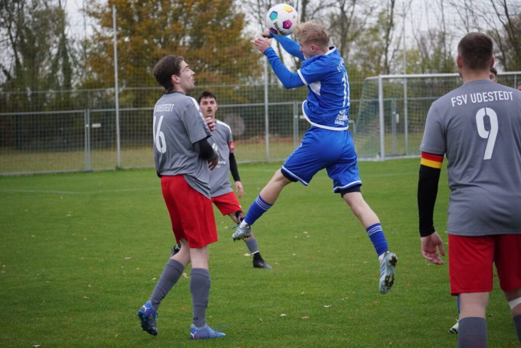 Vor 56 Zuschauern feierte der FC Weißensee 03 einen deutlichen 12:1-Heimsieg gegen den FSV Udestedt 1991. Früh stellte das Team die Weichen: Nach dem 1:0 durch Tom Schnürer legte Ben Gänsler per Elfmeter nach. Udestedt verkürzte ebenfalls vom Punkt, doch noch vor der Pause sorgte ein Gänsler-Doppelpack für den klaren 4:1-Halbzeitstand.