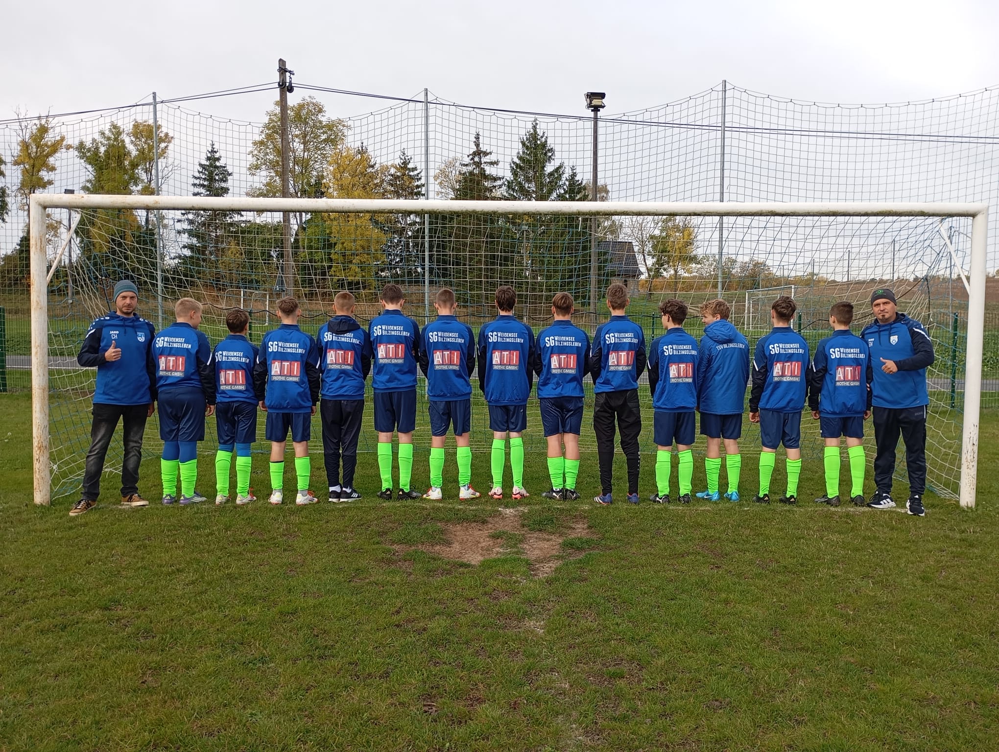 Mit etwas Verspätung reichen wir den Rückblick auf das Testspiel unserer C-Junioren vom 19. Oktober nach – und verbinden ihn mit großem Dank an alle Unterstützer. Vor dem Anpfiff gegen Greußen II standen unsere Jungs erstmals in den neuen Trainingsjacken für ein Mannschaftsfoto zusammen; für die restliche Saison wurden sie komplett mit kurzer und langer Trainingsbekleidung ausgerüstet. Möglich gemacht hat das der FC Weißensee 03, der Organisation und einen großen Teil der Finanzierung übernommen hat, maßgeblich unterstützt von der ATI ROTHE GmbH um Christian Rothe sowie durch einen finanziellen Beitrag des TSV Bilzingsleben. Parallel dazu wurde auch das Trainerteam separat neu ausgestattet – hierfür bedanken wir uns herzlich bei Papesch Heizung Sanitär und bei Fliesen Beck. Der einheitliche Auftritt auf und neben dem Platz macht sichtbar stolz – und gibt Rückenwind.
